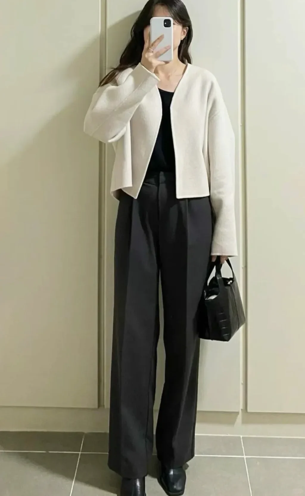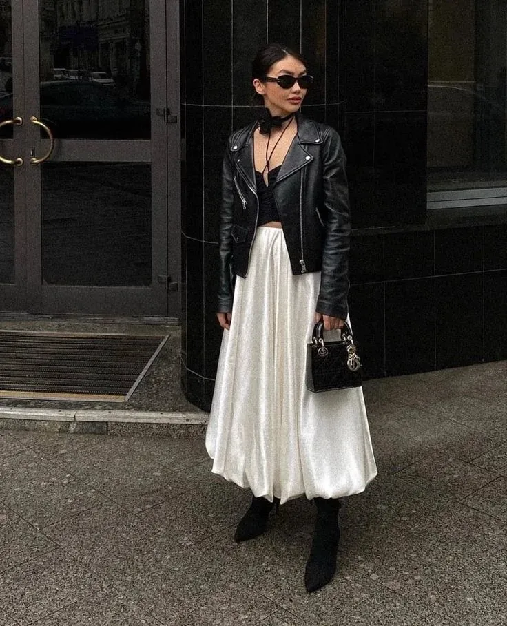 การแต่งตัวด้วยโทนขาวดำจึงไม่จำเป็นต้องน่าเบื่อ แค่ใส่ใจรายละเอียดเล็ก ๆ เช่น เนื้อผ้าและการตัดเย็บ ก็สามารถยกระดับลุคให้ดูมีชีวิตชีวาได้