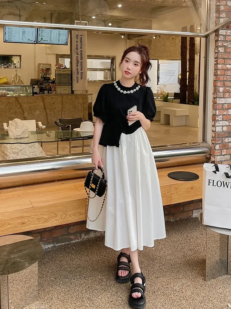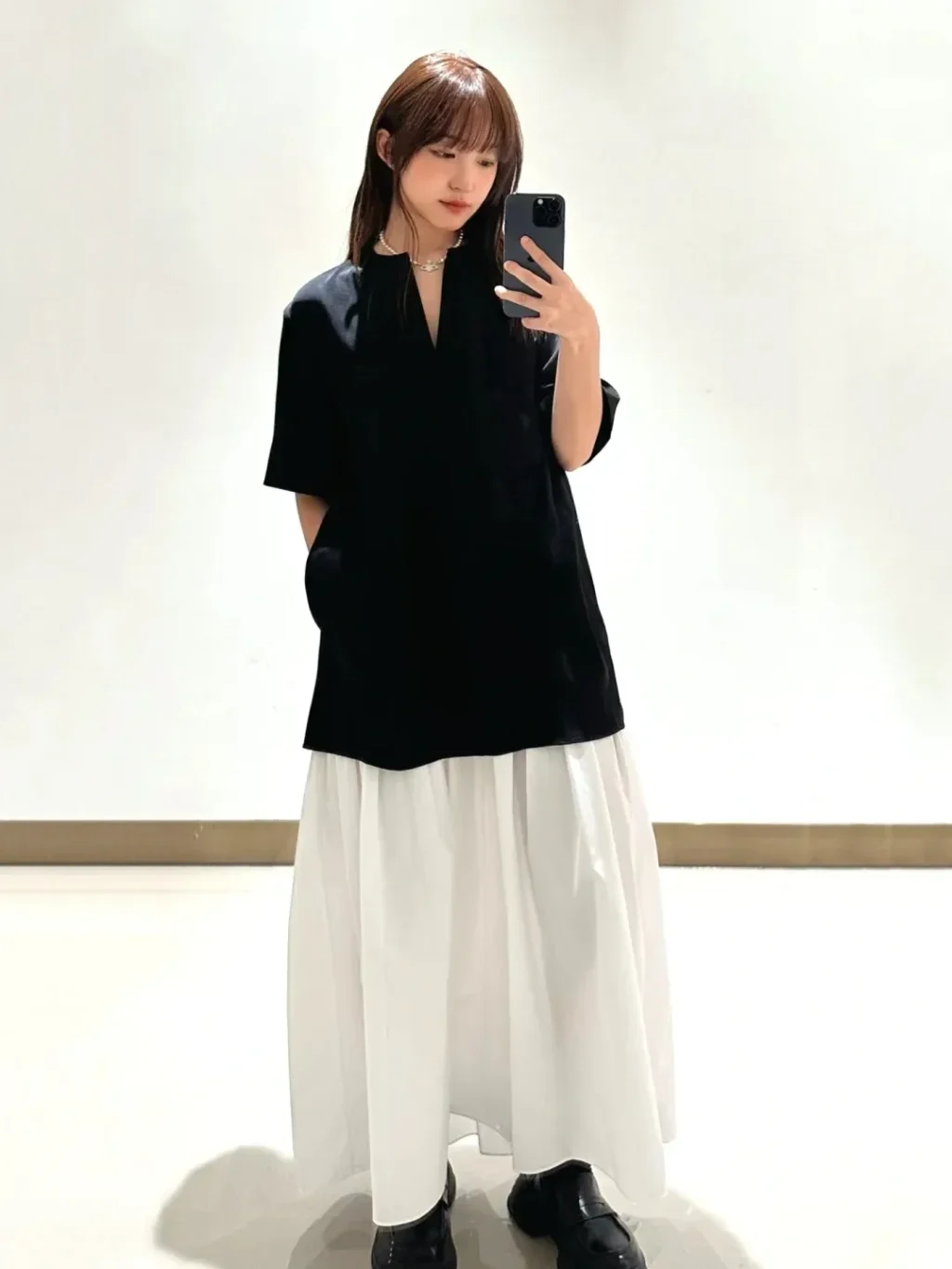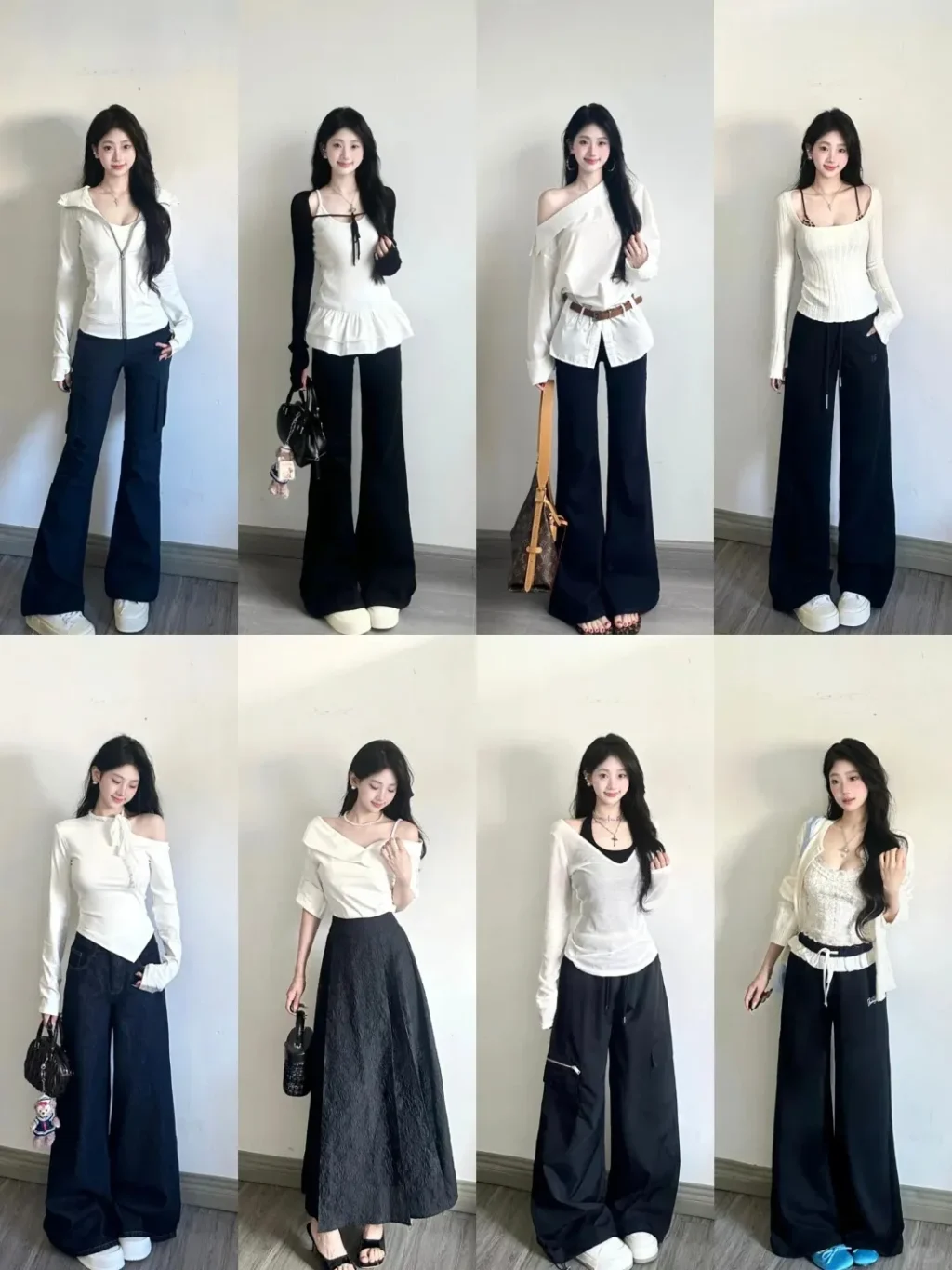 - ลุคทำงาน (Workwear) เสื้อเชิ้ตขาวเรียบใส่คู่กางเกงสแล็กดำ หรือเดรสขาวทับเบลเซอร์สีดำ เหมาะสำหรับวันที่ต้องการความมั่นใจและความสุภาพ