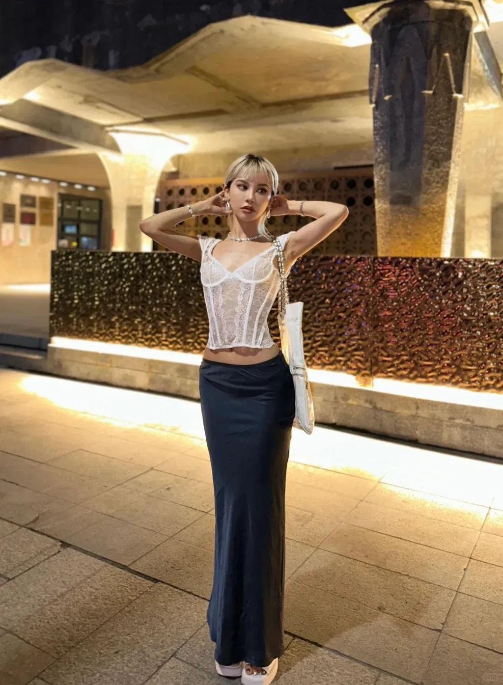 - ผสมผสานผ้ามันกับผ้าด้าน เช่น เสื้อผ้าคอตตอนสีขาวคู่กับกระโปรงหนังสีดำ จะเพิ่มมิติให้ลุคดูหรูขึ้น