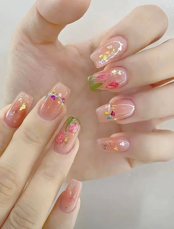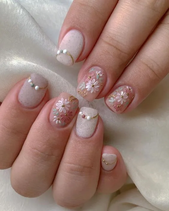 หากธีมงานวิวาห์ของคุณเป็นธีมดอกไม้ หรือสถานที่ที่จัดงานแต่งงานเป็นสวน การเพ้นท์เล็บให้มีลวดลายดอกไม้จะเป็นอะไรที่เข้าธีมสุด ๆ หาช่างเล็บที่คุณไว้ใจเพื่อเพ้นท์เล็บเป็นลวดลายดอกไม้ได้เลย คุณจะกลายเป็นเจ้าสาวที่มีกิมมิคสุดน่ารักและสดใสบนเล็บของคุณในวันสำคัญของคุณได้แน่นอนค่ะ