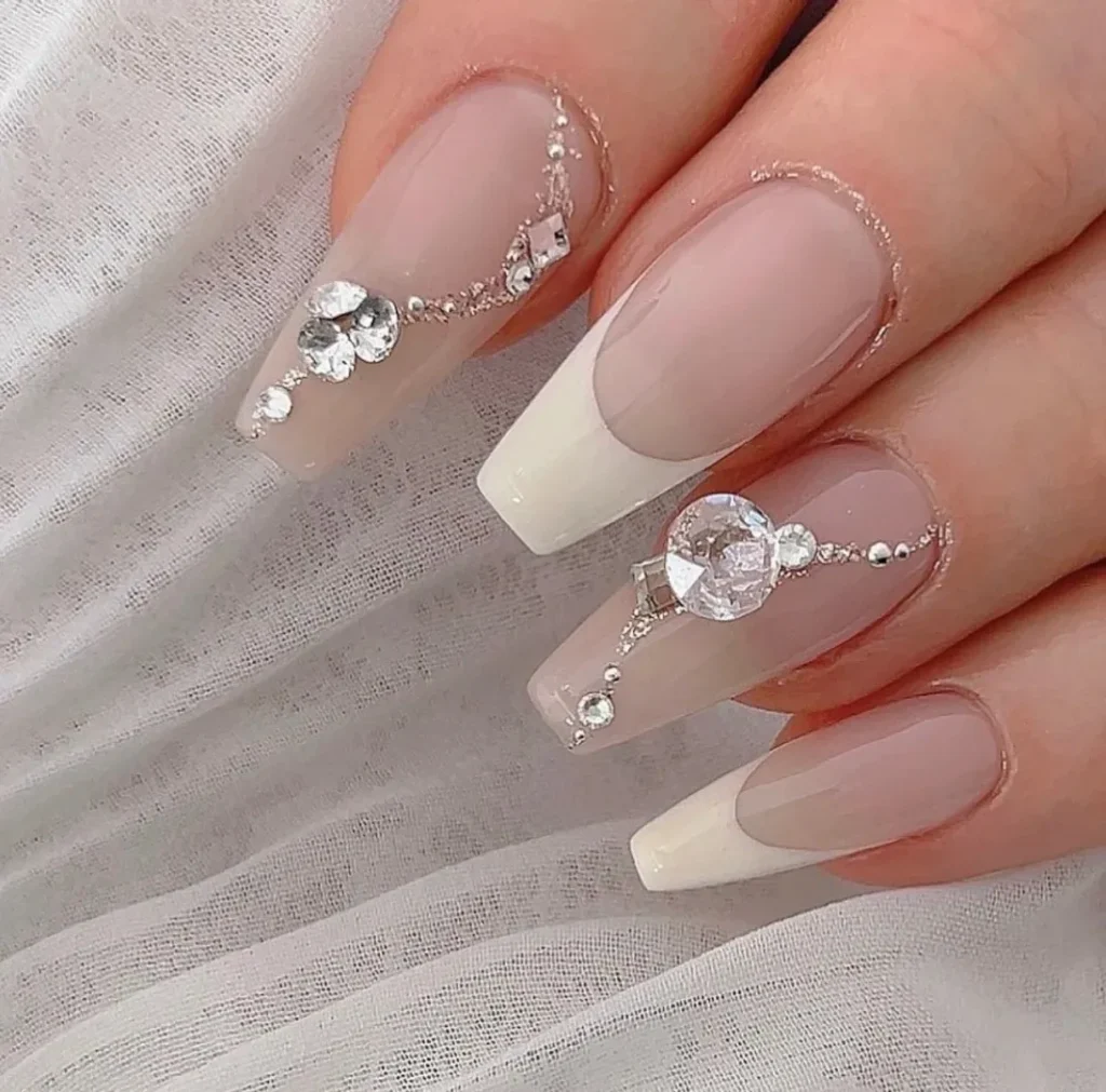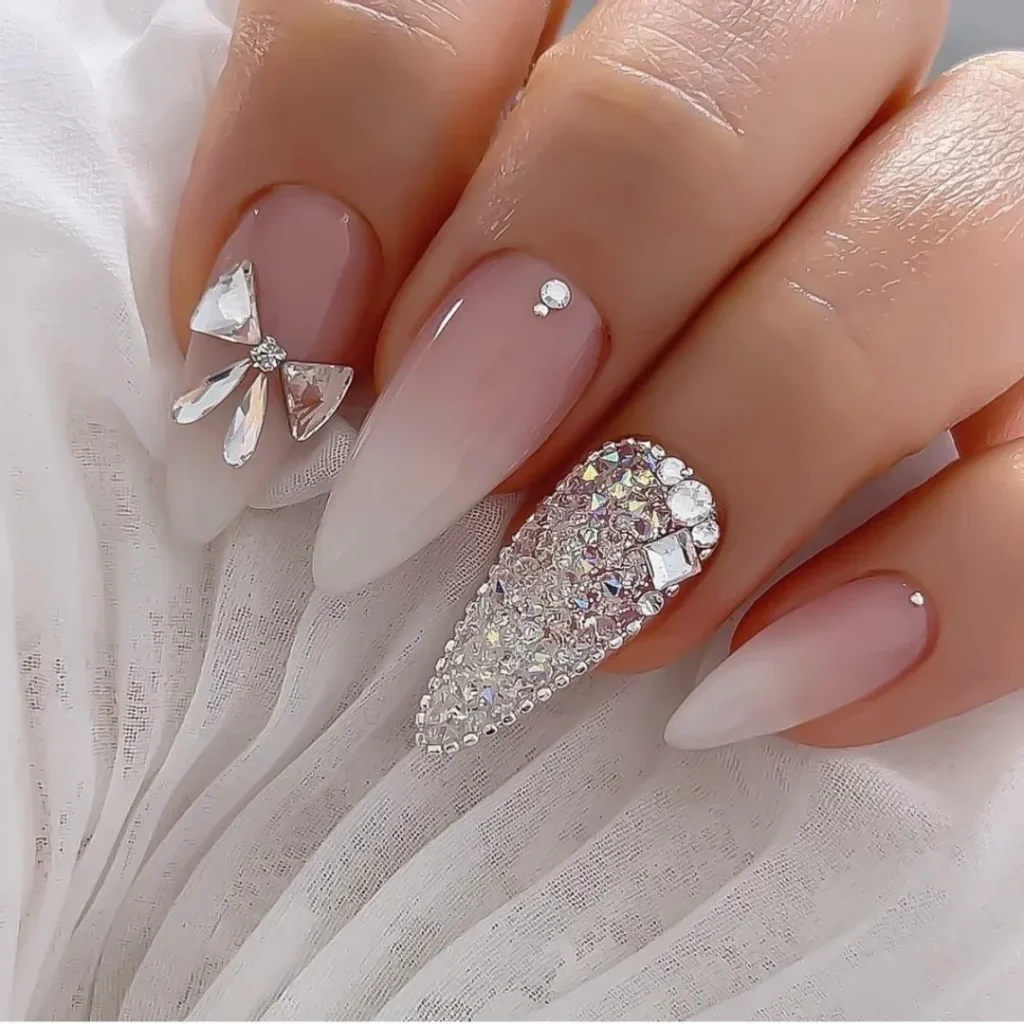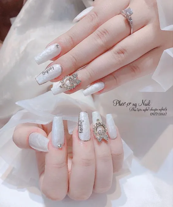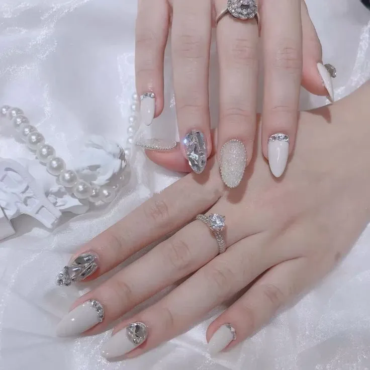 เจ้าสาวท่านใดที่ต้องการความสวยโดดเด่นในวันสำคัญของคุณ การทำเล็บสไตล์คริสตัลสามมิติเป็นอีกหนึ่งลุคที่ช่วยให้คุณดูเป็นเจ้าสาวสวยแพง การทำเล็บแบบติดอะไหล่เพชรหรือคริสตัล จะช่วยให้เล็บและมือของคุณมีความระยิบระยับขั้นสุด อลังการงานสร้างแบบจัดเต็มมากๆ ถ่ายรูปออกมาสวยแพงแบบไม่มีใครเถียงได้เลยค่ะ