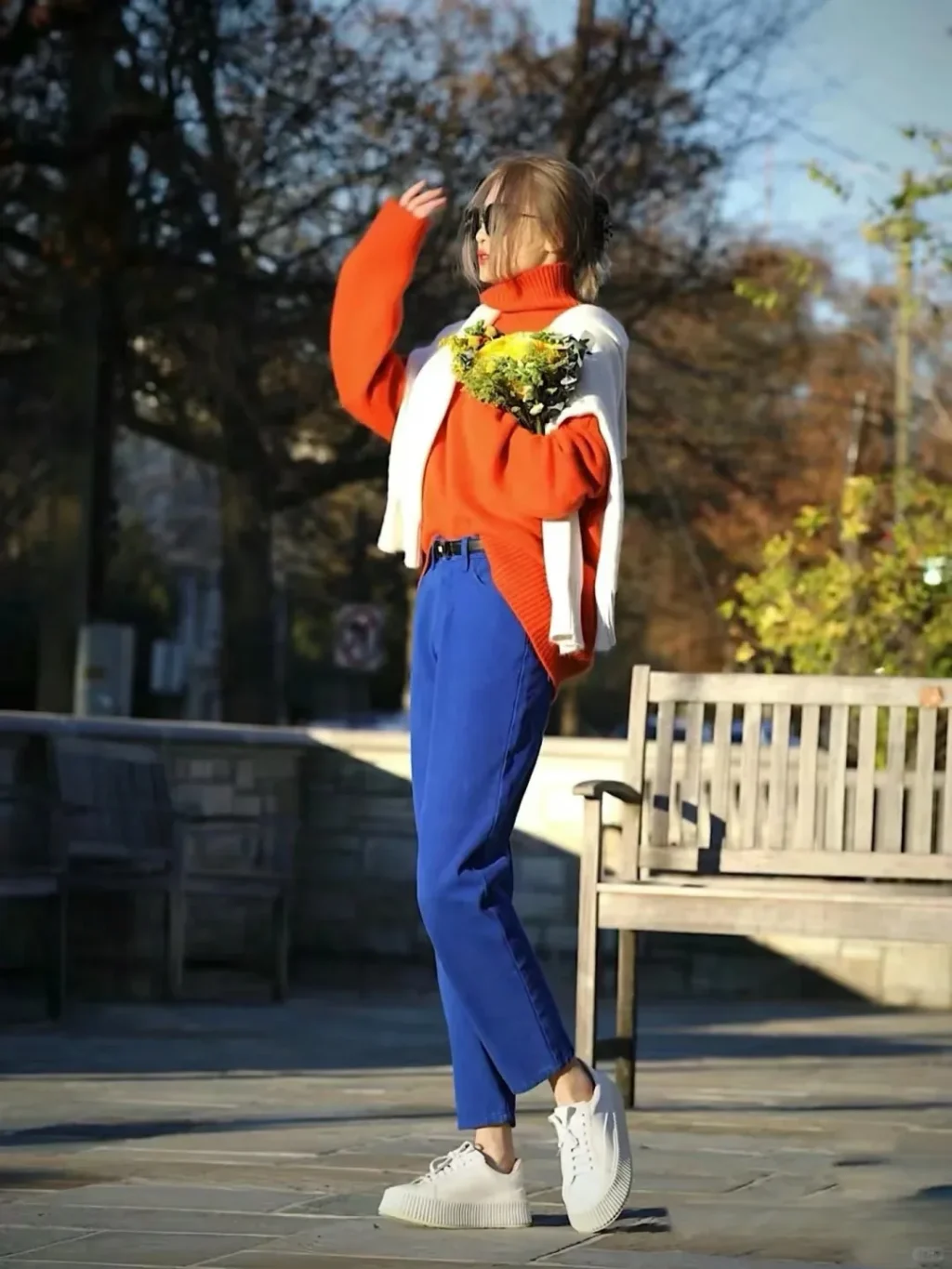 เคล็ดลับ: ใช้หนึ่งสีเป็นหลัก อีกสีเป็นแอคเซสซอรี เช่น กระเป๋า หรือรองเท้า เพื่อบาลานซ์ความแรงของสี