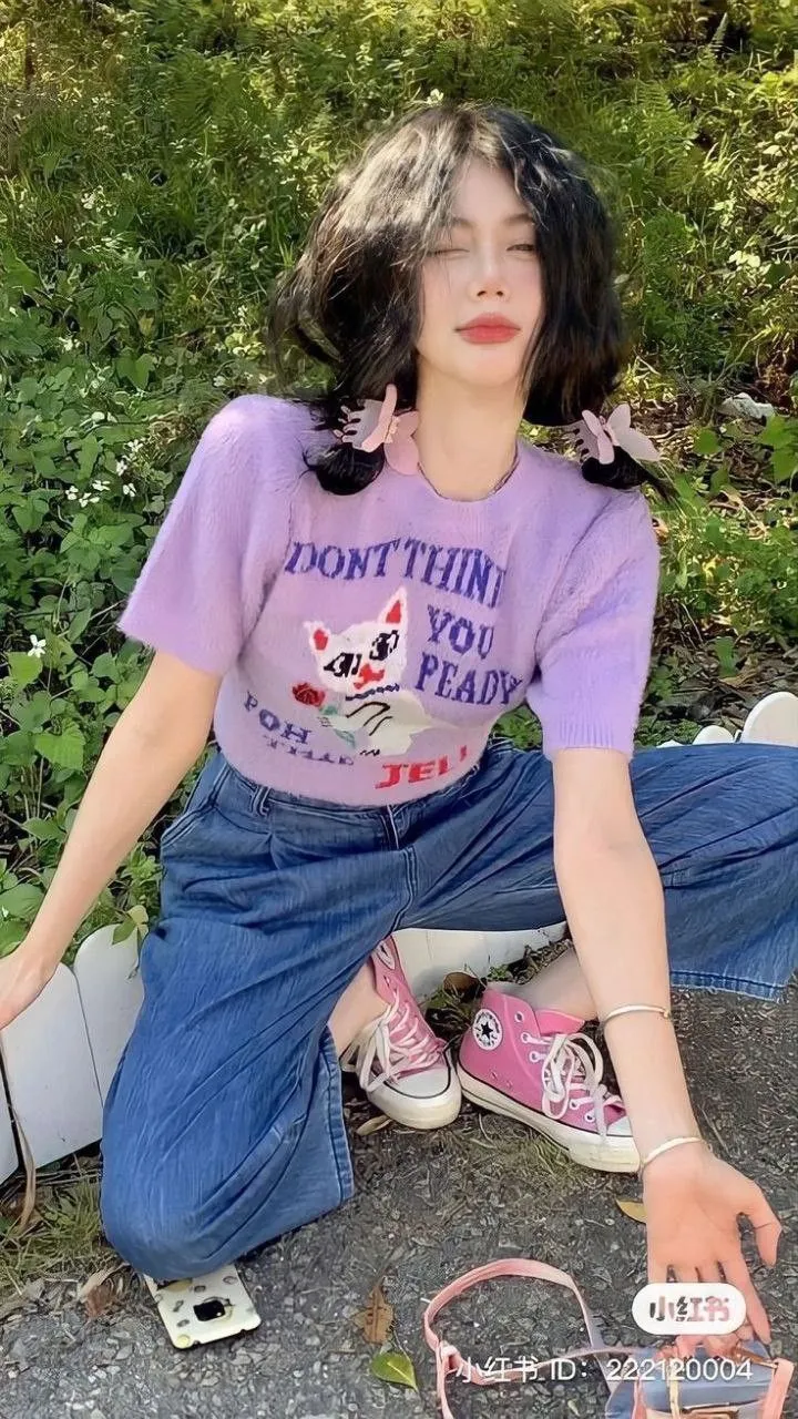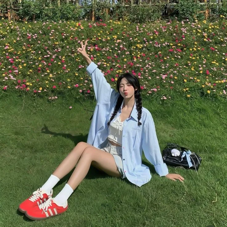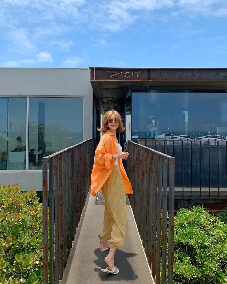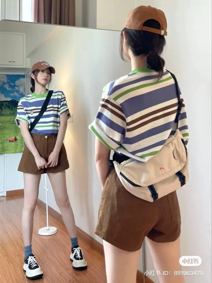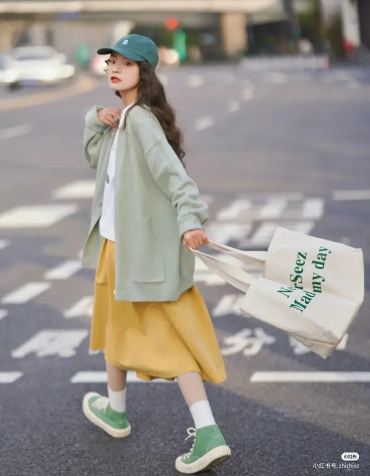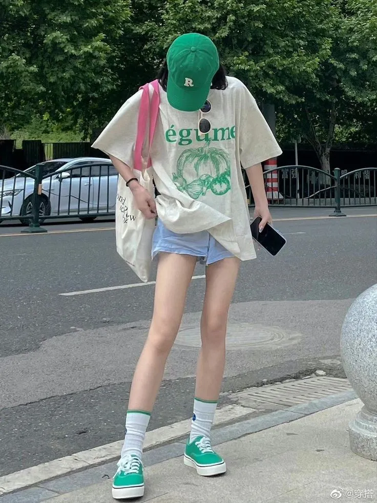- ผู้หญิง: เสื้อครอปสีเหลือง + กางเกงยีนส์น้ำเงิน + รองเท้าสีแดง = ลุคแคชชวลน่ารัก