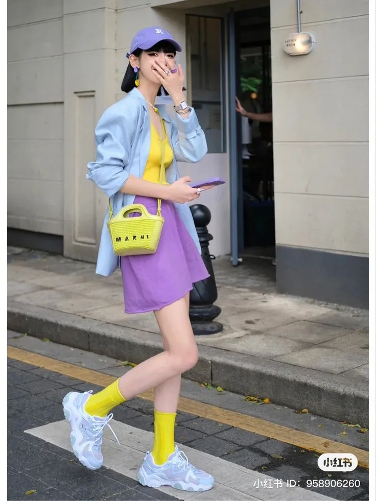 - ผู้หญิง: เสื้อสีม่วงพาสเทล + กระโปรงสีเหลืองมัสตาร์ด = ลุคสดใสชวนมอง