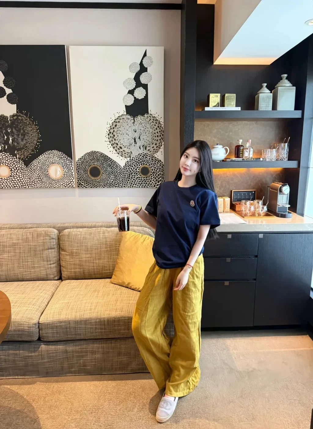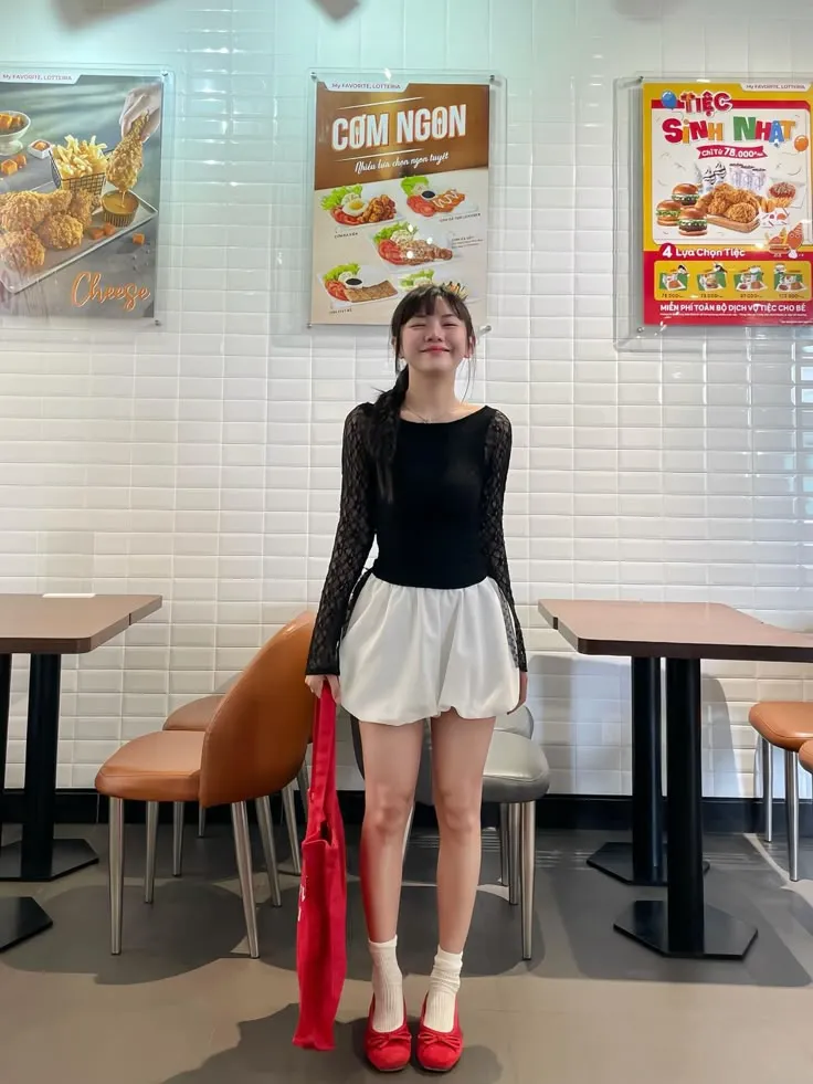 เคล็ดลับ: เพิ่มแอคเซสซอรีต่างโทน เช่น สร้อยทอง หรือกระเป๋าสีเบจ เพื่อเพิ่มจุดสนใจ