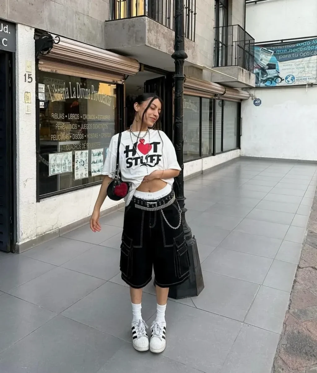 - เครื่องประดับโลหะ เช่น สายโซ่ เข็มขัดหัวใหญ่ และต่างหูห่วง