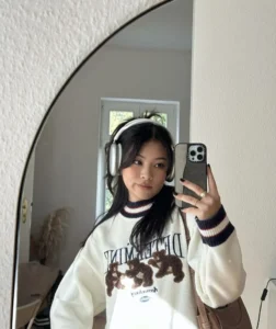 ท่าฮิตคือ Fit Check แบบหัวโตตัวเล็ก ใช้มุมกล้องจากด้านบนหรือเลนส์มุมกว้าง ทำให้หัวดูใหญ่ขึ้นและตัวดูเล็กลง ภาพที่ได้จะดูขำ ๆ น่ารัก และมีเอกลักษณ์ อีกท่าที่นิยมมากคือถ่ายหน้ากระจก โดยยกมือถือบังหน้าเล็กน้อย จะได้ทั้งภาพลุคเสื้อผ้าและความเป็นตัวเองในแบบไม่ต้องโชว์หน้าตรง ๆ