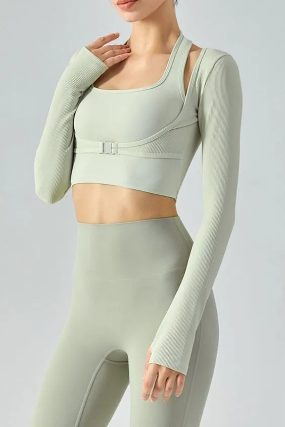 ใครที่ชอบการออกกำลังกายแบบช้า ๆ ใช้สมาธิสูง อย่างโยคะหรือพิลาทิส ลุคนี้ตอบโจทย์มาก เสื้อแขนยาวทรงเข้ารูปหรือดีไซน์ไขว้เล็กน้อย ช่วยให้ลุคดูอ่อนโยนและเป็นผู้หญิงขึ้น ในขณะเดียวกันก็ยังคงความคล่องตัว
