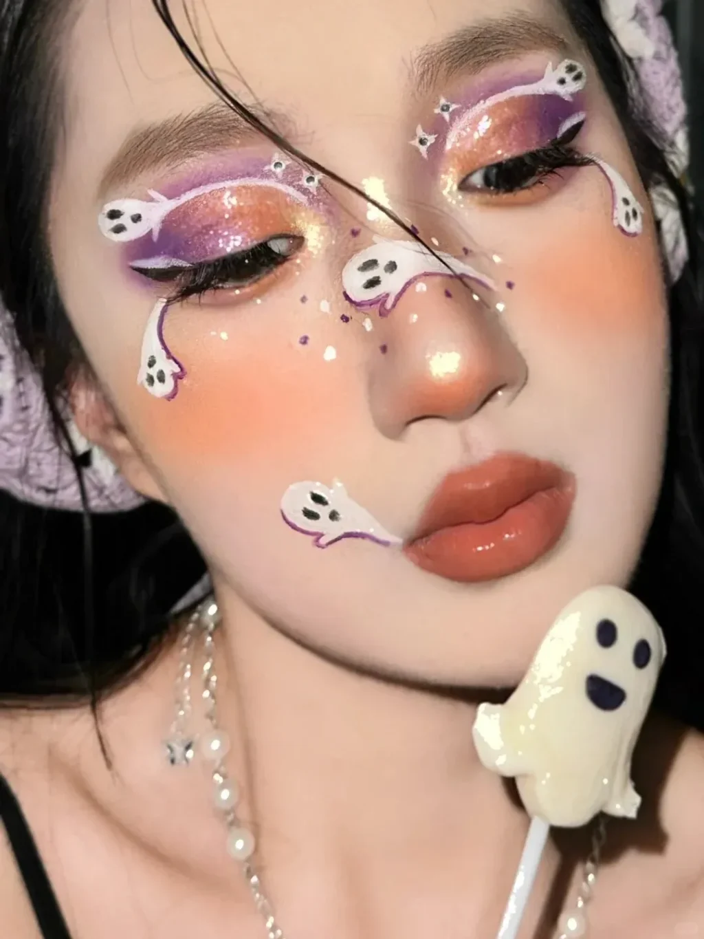 การแต่งหน้าในเทศกาลฮาโลวีนไม่ได้มีข้อจำกัดเลยว่า คุณจะต้องแต่งให้ดูน่ากลัวหรือแต่งให้ดูหลอนเพียงอย่างเดียวเท่านั้น สาวๆ ท่านใดที่อยากแต่งหน้าร่วมเทศกาลฮาโลวีนแบบน่ารัก ๆ ก็สามารถนำธีมนี้ไปประยุกต์ใช้ได้ ยกตัวอย่างเช่น การวาดดวงตาให้ดูใหญ่โตเกินจริง หรือใช้อายไลน์เนอร์วาดลวดลายบนในหน้า แค่นี้คุณก็สามารถแต่งหน้าเข้าธีมฮาโลวีนแบบน่ารัก ๆ ได้แล้ว