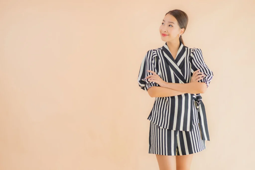 คำถามที่ว่า ผู้หญิงสูง150 แต่งตัวยังไง ให้ใช้อาวุธลับอย่าง เสื้อลายทางแนวตรง เป็นคำตอบให้คุณได้เลย เพราะสาวที่มีรูปร่างอวบก็สามารถหยิบเสื้อสไตล์นี้มาใส่ได้ด้วยเช่นกัน การใส่เสื้อลายทางแนวตรงขนานไปกับลำตัว จะช่วยพรางหุ่นให้ดูสูงเพรียวมากยิ่งขึ้น แถมยังเลือกมิกซ์แอนด์แมตช์ได้หลายแบบ หรือจะนำเข็มขัดมาใส่เป็นเครื่องประดับเพิ่มเติมก็ยื่งทำให้รูปร่างดูมีทรวดทรงมากขึ้นด้วย