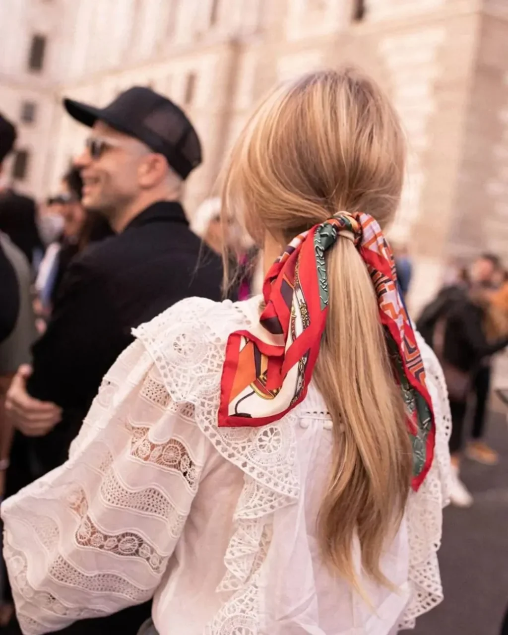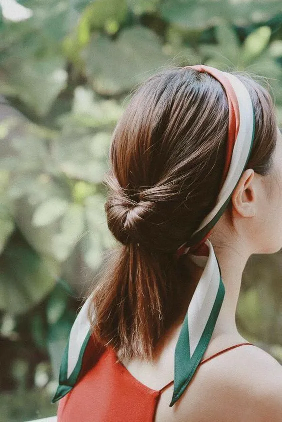 สาว ๆ สามารถรวบผมหางม้าเพื่อคลายร้อนโดยใช้ ผ้าโพกหัว เป็นตัวช่วยในการปรับลุคให้ดูมีสไตล์ได้อีกด้วย เพียงคุณผมมัดผมให้เรียบร้อยและนำผ้าโพกหัวที่พับหลาย ๆ ทบจนเป็นเส้นยาว นำมาพันรอบ ๆ บริเวณที่มัดผมและผูกไว้ให้แน่น ปล่อยปลายผ้าทิ้งไว้โดยไม้จำเป็นต้องผูกโบว์ สามารถแต่งตามไอเดียนี้ได้ตลอด ไม่ว่าจะเป็นช่วงไหนก็ตาม