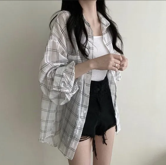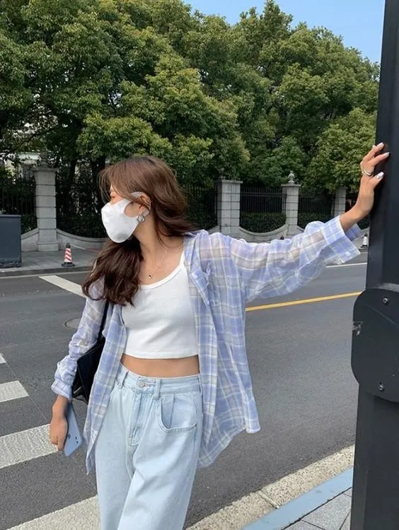 2. ลุคเท่ ๆ ผสมความเซ็กซี่ แมตช์เสื้อสายเดี่ยวกับกางเกงยีนส์ จากนั้นคลุมทับด้วยเสื้อเชิ้ตทรง Oversize เหมาะกับผู้หญิงที่ต้องการแต่งตัวเท่ ๆ แต่แฝงไปด้วยความเซ็กซี่นิด ๆ