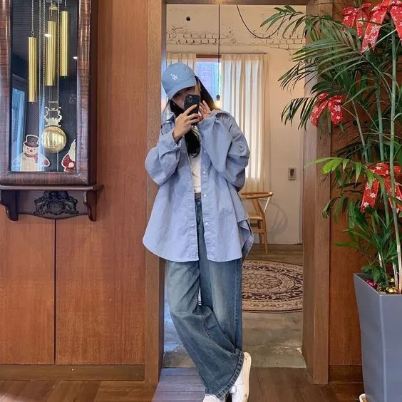 5. ลุคมินิมอลแนวสตรีทเท่ ๆ แมตช์เสื้อเชิ้ตสีเอิร์ธโทนกับกางเกงยีนส์สายชิล ใส่หมวกคุมโทน พร้อมรองเท้าผ้าใบ จะได้ลุคมินิมอลแนวสตรีทเท่ ๆ เหมาะกับสายชิลโดยเฉพาะ