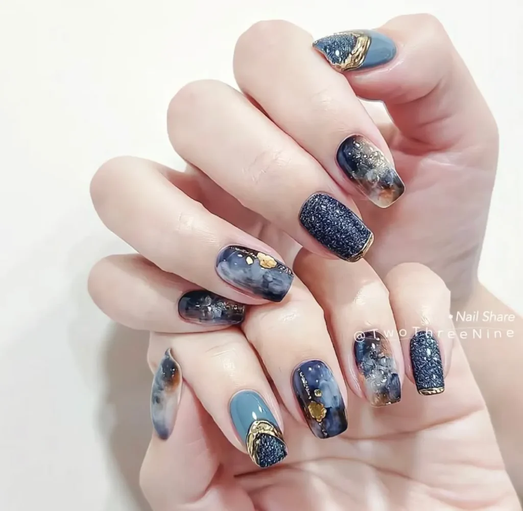 สีเล็บเสริมดวง สีน้ำเงิน เสริมบารมีให้ดูน่าเกรงขาม