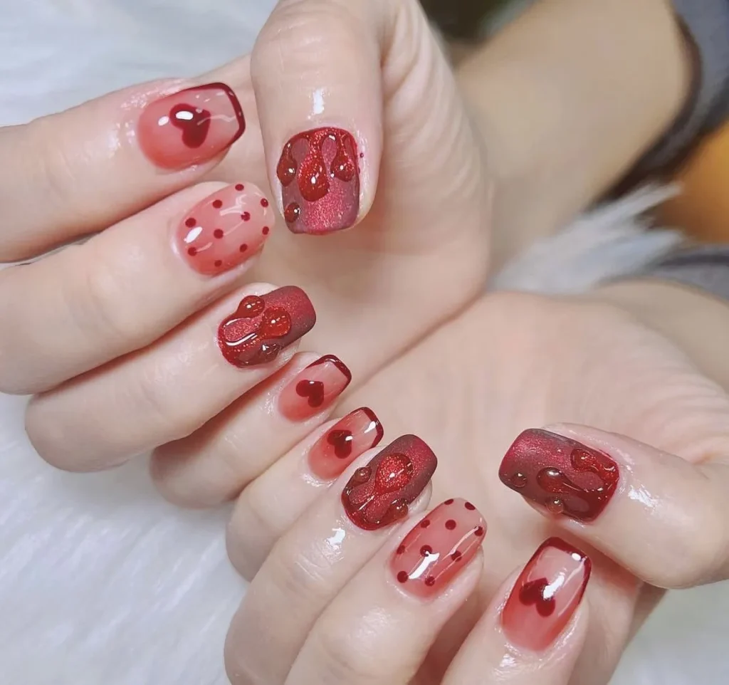 สีเล็บเสริมดวง สีแดง เสริมเรื่องเสน่ห์และความรัก