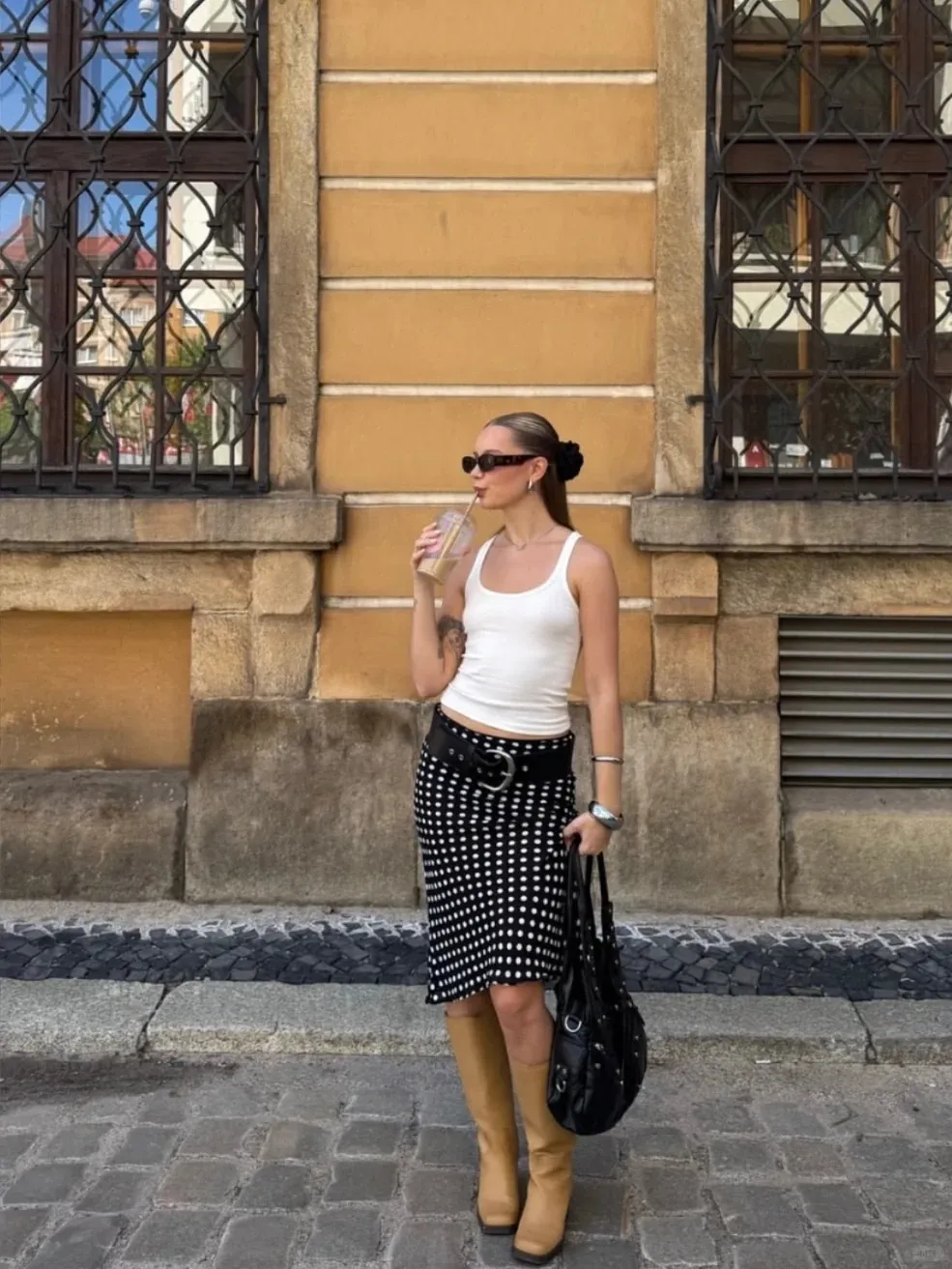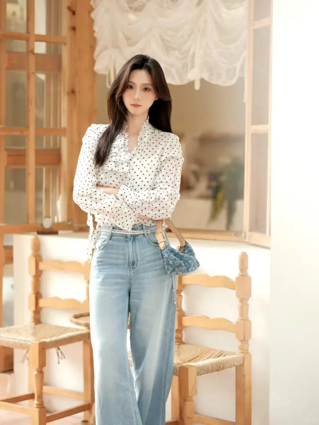 - เริ่มต้นด้วยลุคเก๋ ๆ เพียงแค่คุณหยิบเสื้อแขนกุดลายจุด แต่งกับกางเกงยีนส์เอวสูง ก็ได้ลุกแมตช์ตามเทรนด์แฟชั่นลายจุดง่าย ๆ แล้ว