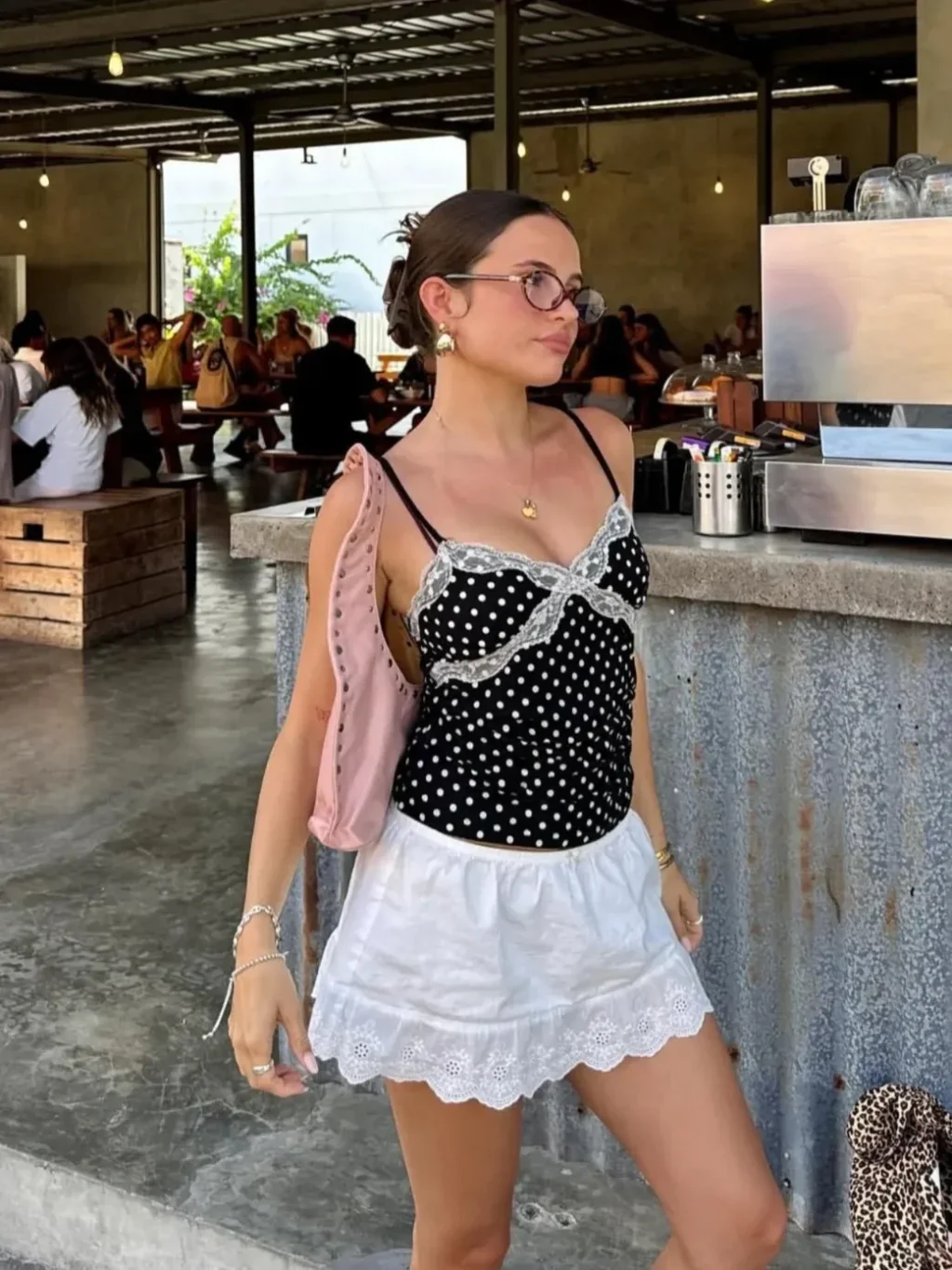 - สาว ๆ ท่านใดที่อยากตามเทรนด์ โพลกา ดอท ในลุคเซ็กซี่ หยิบเสื้อสายเดี่ยวสีเข้มเรียบ ๆ ใส่คู่กับกระโปรงแม็กซี่ลายจุด นอกจากจะแต่งตามได้ง่ายแล้ว ยังได้ลุคเซ็กซี่อีกด้วย