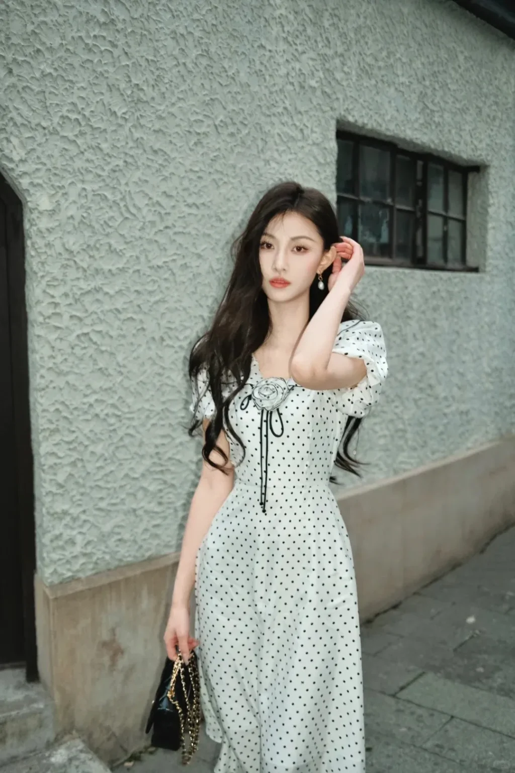 - หรือจะสวมเสื้อลายจุดแบบคล้องคอ แต่งเข้ากับกระโปรงยาวสีเรียบง่าย การมิกซ์แอนด์แมตช์แบบนี้ จะได้ตามแทรนด์แฟชั่นลายจุด ในลุคสวยหรู ดูแพง แต่งตามได้ง่ายมาก ๆ อีกด้วย