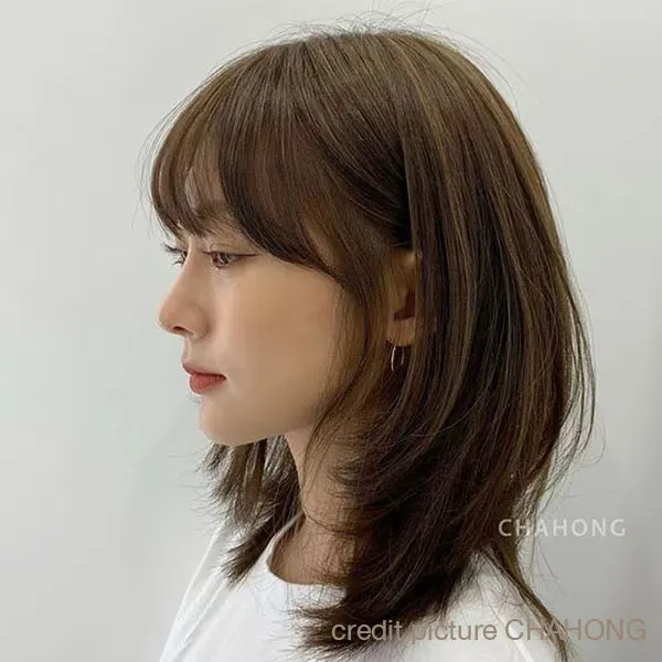 การตัดผมทรงหน้าม้าเท่าคาง เหมาะกับสาวที่มีใบหน้าเป็นทรงกลม ทรงนี้จะช่วยปิดหัวเหม่งให้คุณได้ แถมการสไลซ์ด้านข้างจะทำให้กรอบหน้าของคุณดูเล็กลงได้อีกด้วย สามารถเพิ่มวอลลุ่มด้วยการเซ็ตผมให้ดูยุ่ง ๆ หน่อยก็ได้