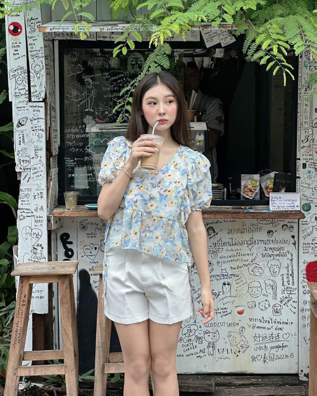ถ้าอยากให้ลุคดูทันสมัยขึ้น ลองเลือกทรงที่เรียบขึ้น เช่น เสื้อเชิ้ตลายดอกแมตช์กับกางเกงขาสั้นสีพื้น หรือเดรสลายดอกทรงปล่อยที่ไม่รัดรูปเกินไป แบบนี้จะยังคงความสดใส แต่ไม่ดูแน่นหรือรกสายตาเกินไปเวลาเปียกน้ำ