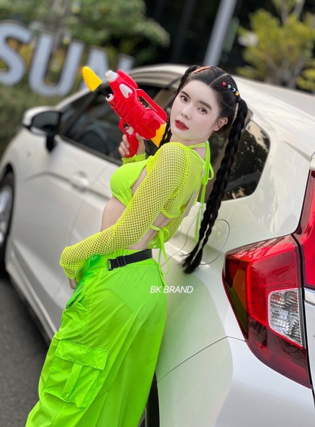 ใครที่อยากให้ลุคโดดเด่น ตั้งแต่ยังไม่ทันเดินเข้าโซนเล่นน้ำ โทนสีนีออนคือคำตอบ สีเขียวสะท้อนแสง ชมพูจี๊ด หรือส้มสด ๆ ช่วยให้ลุคดูสนุกขึ้นทันที และยิ่งอยู่กลางแดด สีจะยิ่งชัดและถ่ายรูปขึ้นมาก