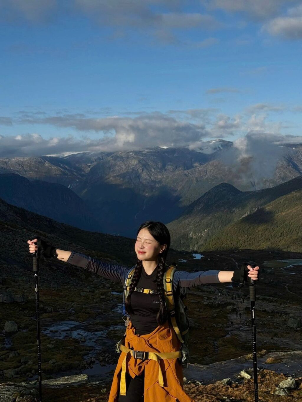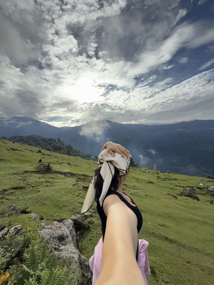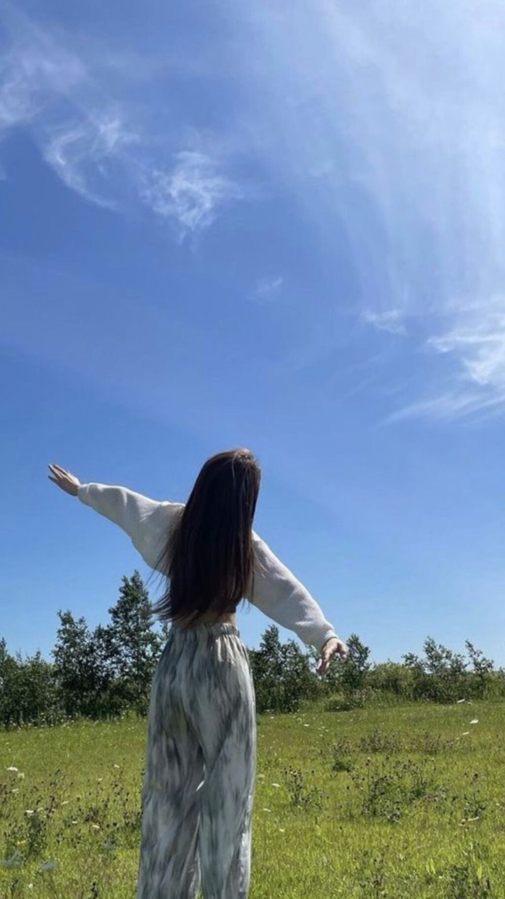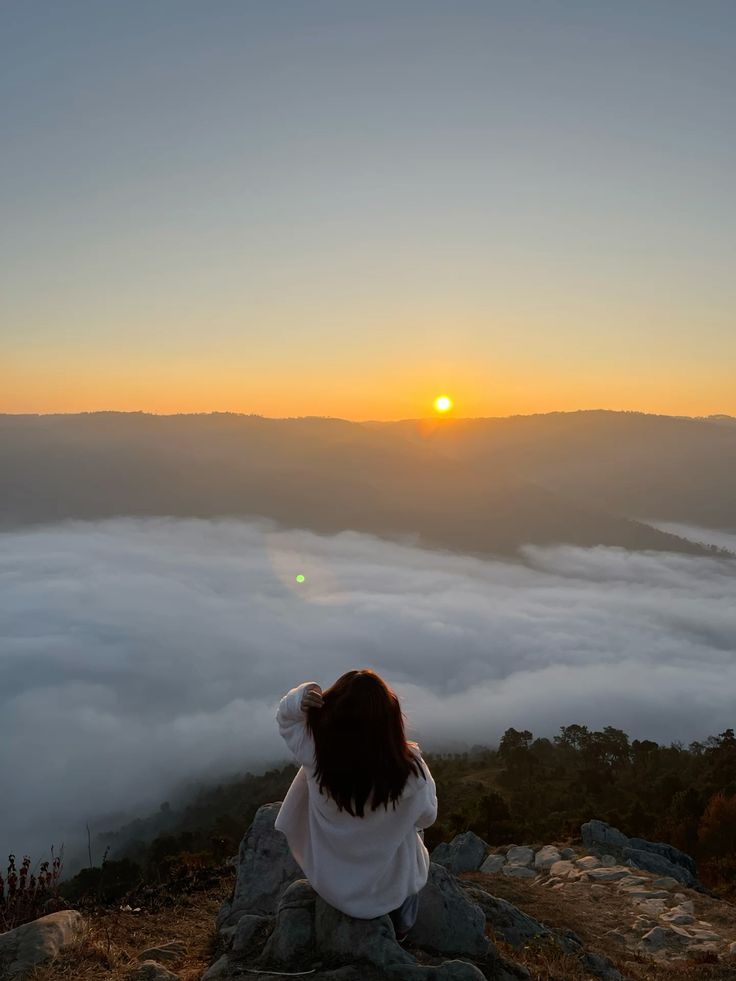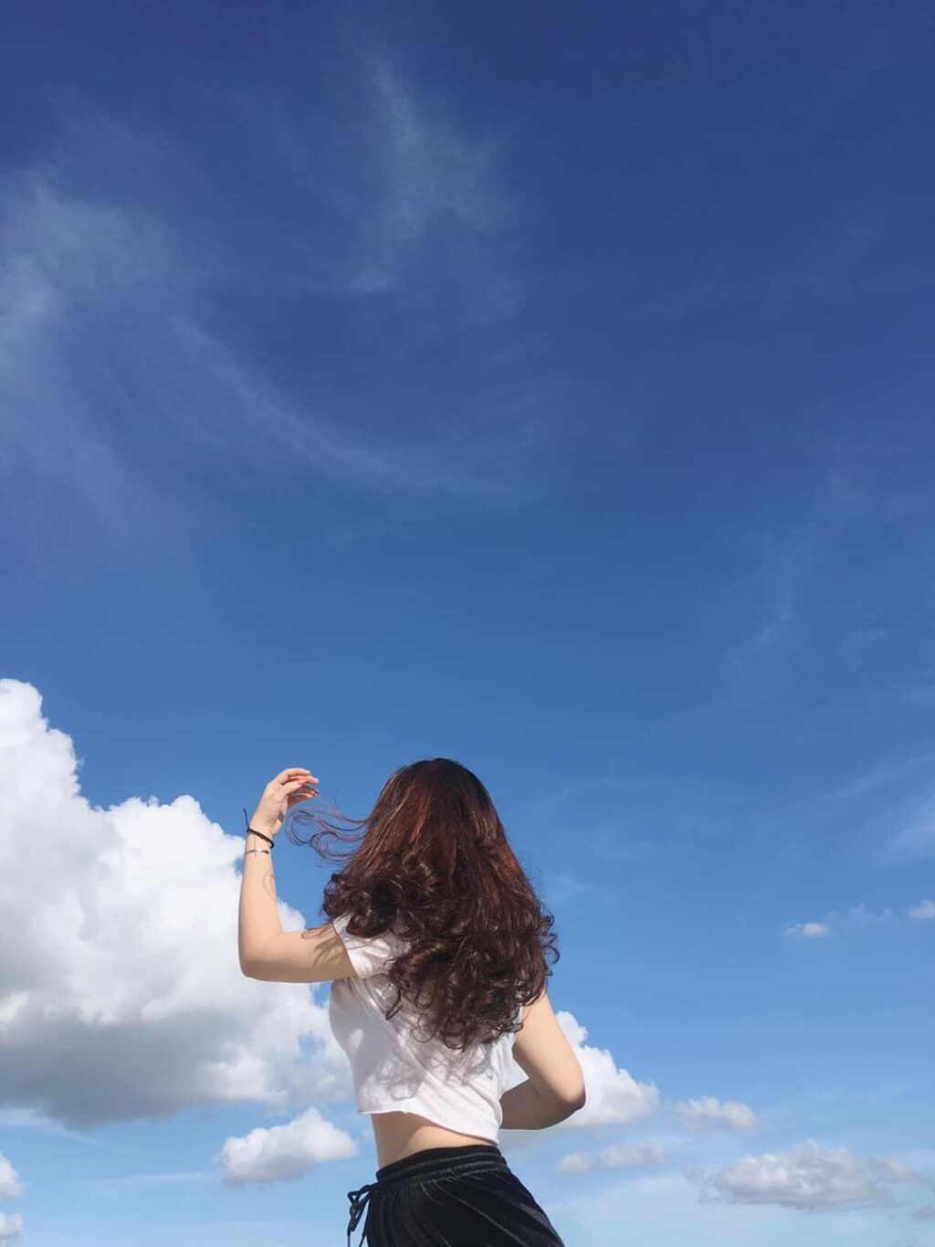 ยกกล้องขึ้นเล็กน้อยแล้วถ่ายแบบมุมเสย ให้ท้องฟ้ากินพื้นที่ด้านหลังเยอะ ๆ ภาพจะดูโปร่ง โล่ง และช่วยให้ใบหน้าดูสว่างขึ้นโดยธรรมชาติ ลองหันหน้าเข้าหาแสง ภาพจะดูสดใสและมีชีวิตแบบไม่ต้องจัดท่าซับซ้อนเลย