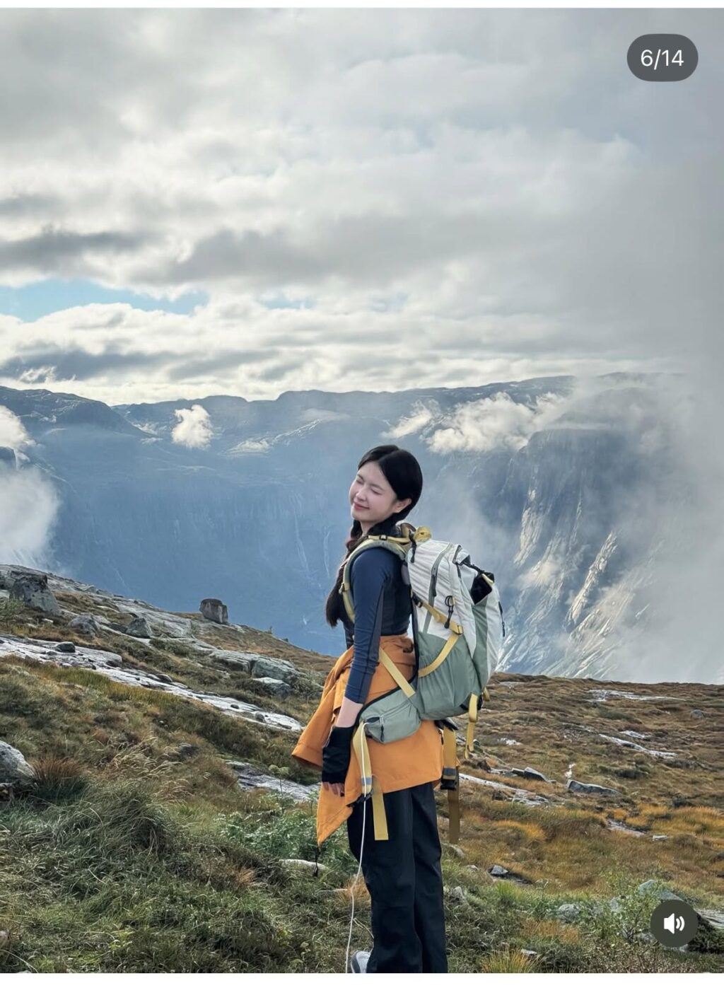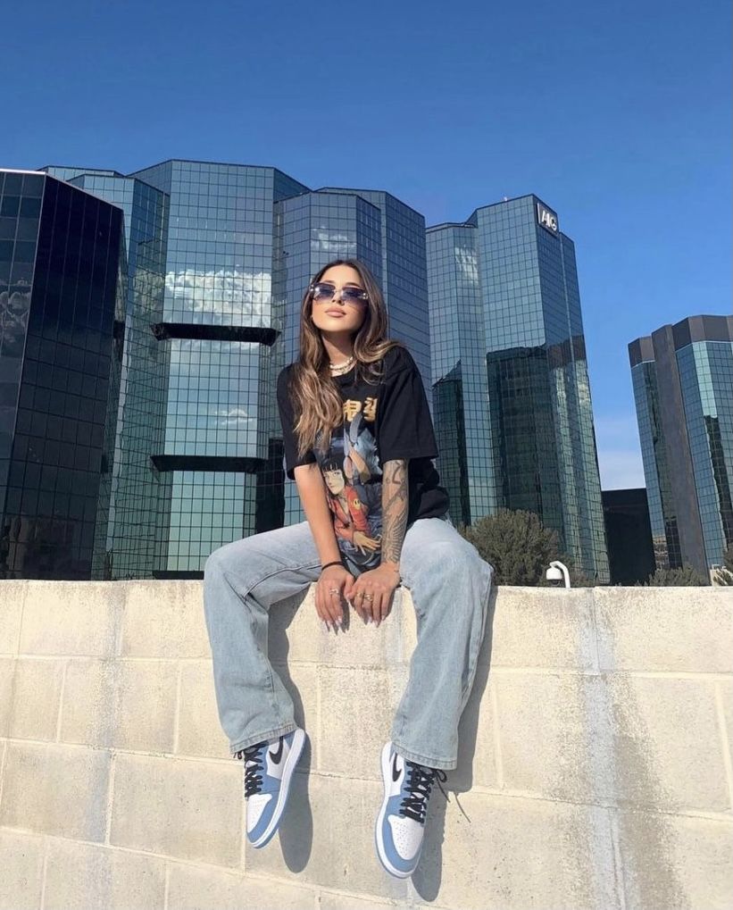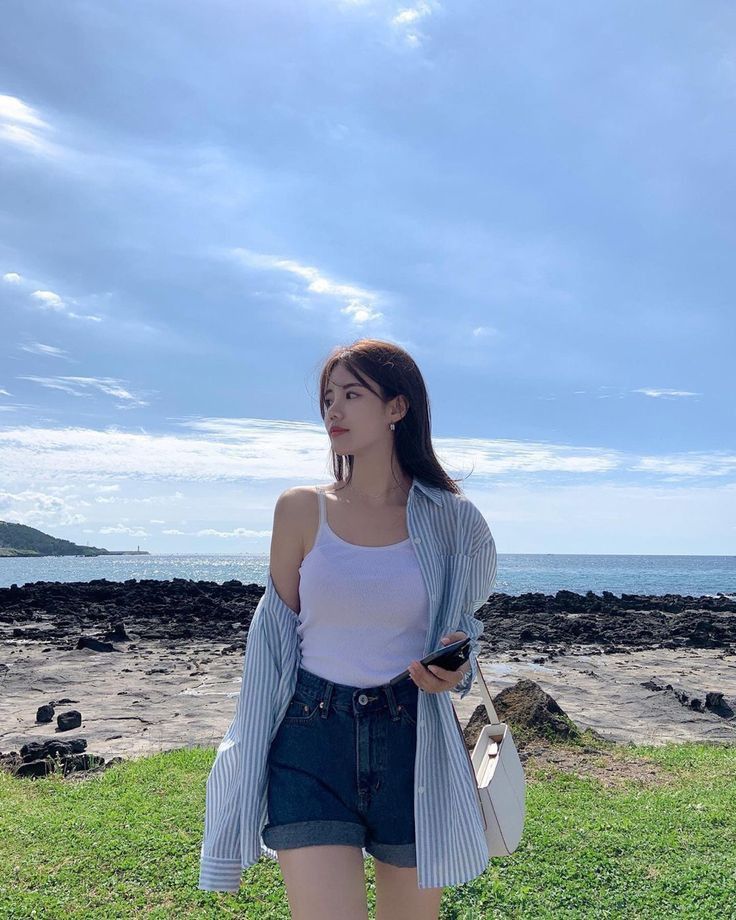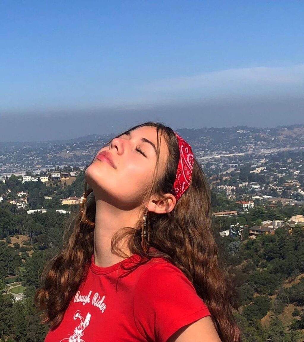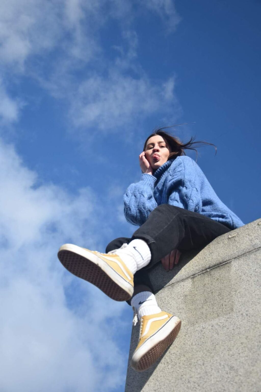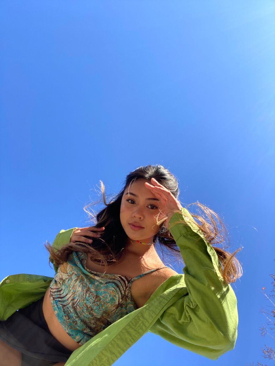 ถ้าอยู่ดาดฟ้าหรือจุดชมวิว ลองเปิดเฟรมให้เห็นทั้งท้องฟ้าและวิวด้านหลัง ภาพจะได้ความรู้สึกโมเดิร์น ดูมีสเกล และให้บรรยากาศแบบสาวเมืองที่รักอิสระ