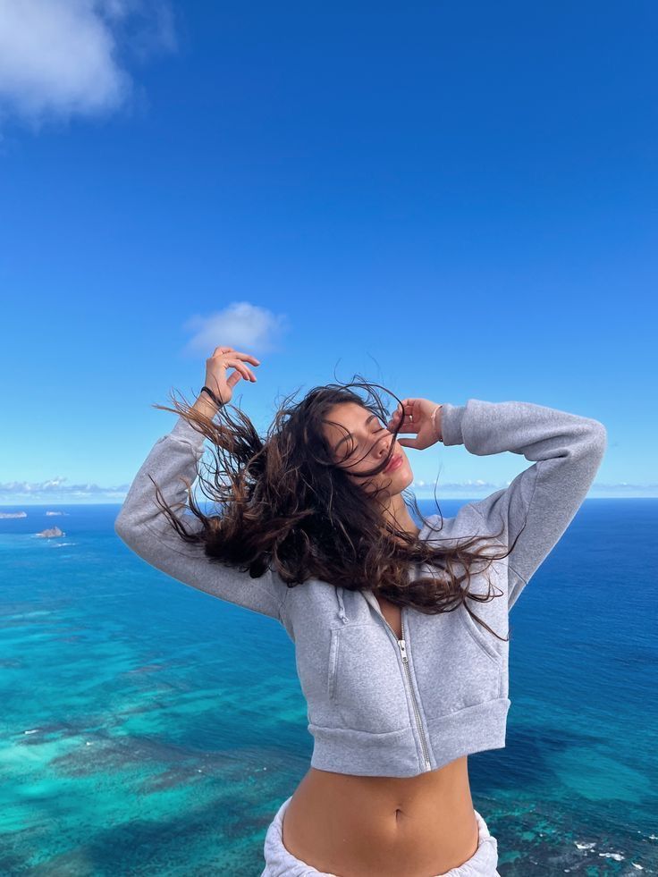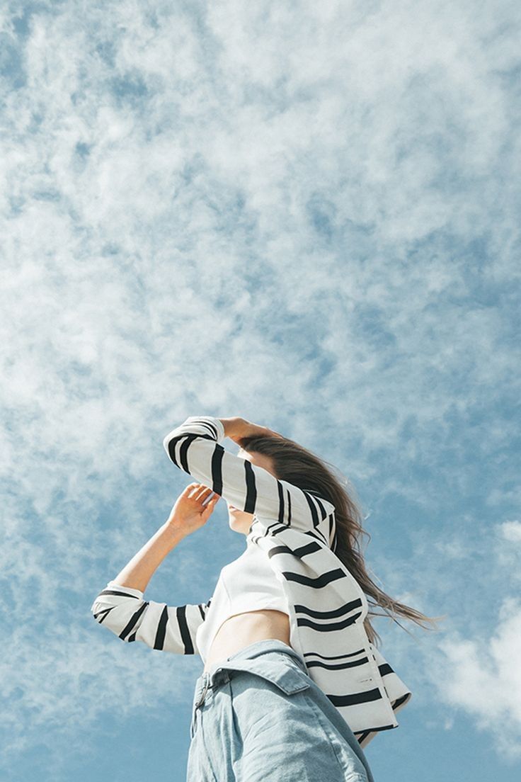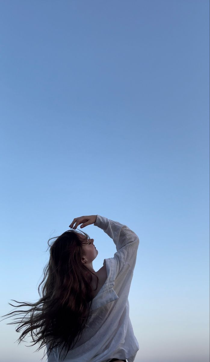 ท่านี้เหมาะกับวันที่ลมพัดสบาย ๆ แค่หันข้างเล็กน้อย แล้วยกมือเสยผมเบา ๆ ความเคลื่อนไหวของเส้นผมกับฉากหลังเป็นท้องฟ้าสีฟ้า จะทำให้ภาพดูเป็นธรรมชาติ และมีเสน่ห์แบบไม่ตั้งใจเกินไป
