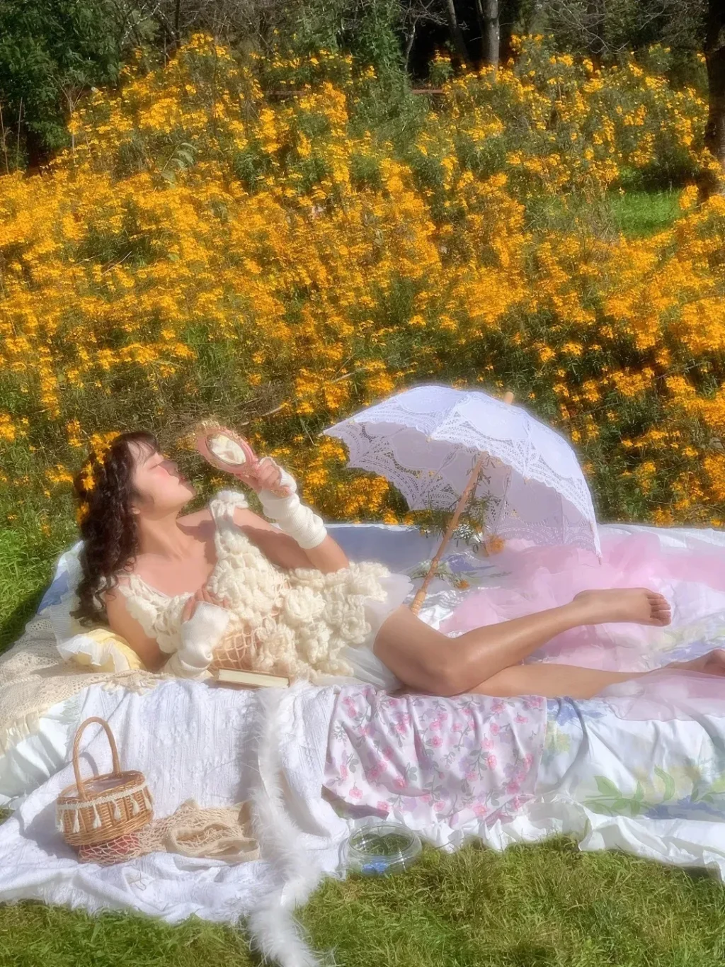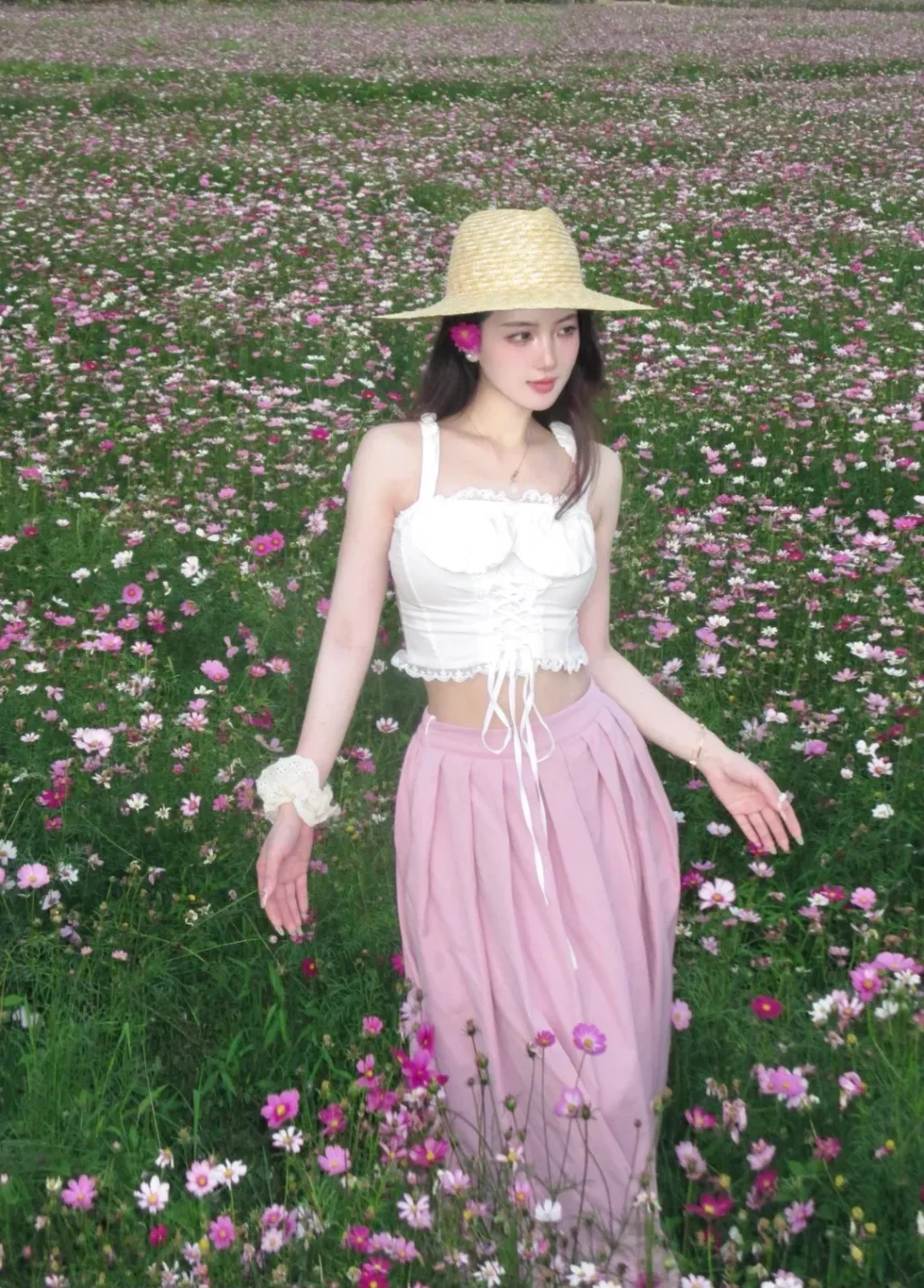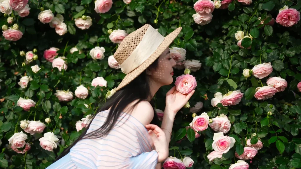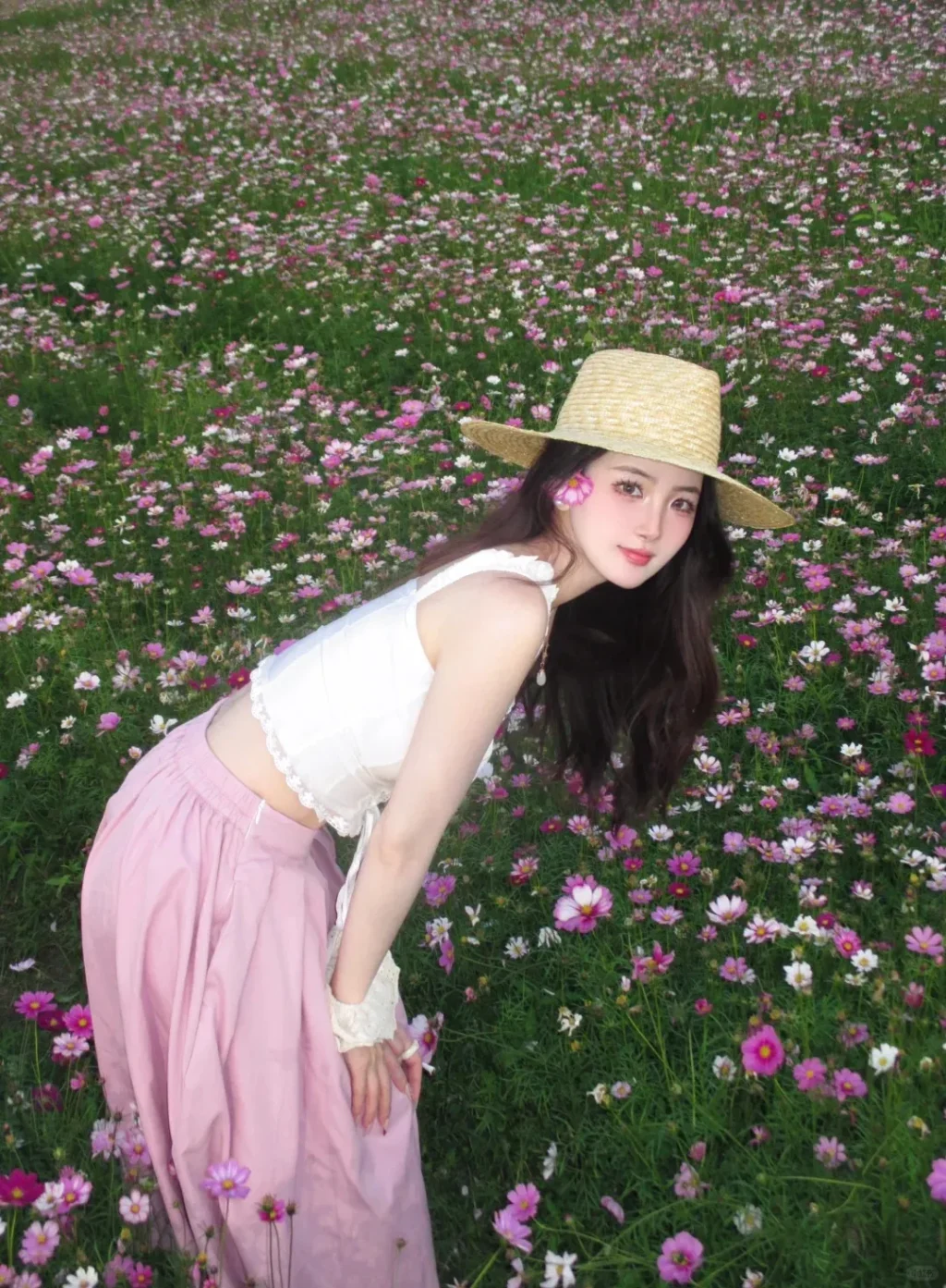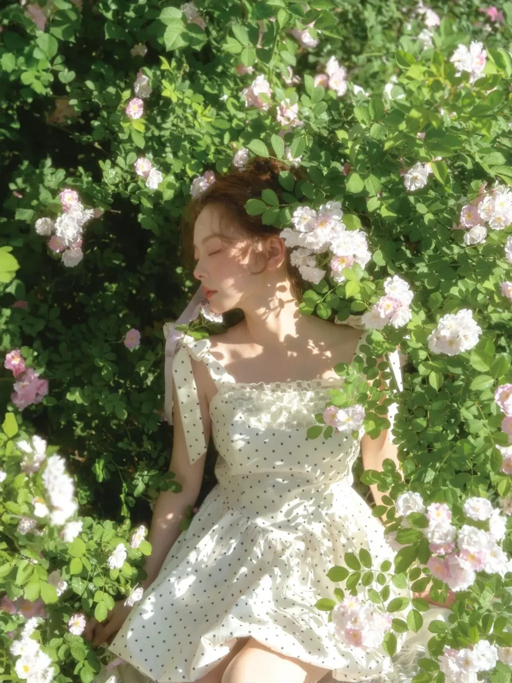 เป็นไอเดียการถ่ายรูปกับดอกไม้โดยใช้ดอกไม้สวย ๆ เป็นแบ็คกราวน์ให้สาว ๆ ไปเลย การถ่ายภาพแบบนี้จะช่วยให้ภาพดูสดชื่นขึ้น เหมือนคุณกำลังอยู่ในสวนดอกไม้ ด้วยความที่ภาพพื้นหลังเป็นดอกไม้เต็มไปหมด สาว ๆ อาจจะสงสัยว่า ถ่ายรูปกับดอกไม้ ใส่เสื้อสีอะไรดี แนะนำว่าให้เตรียมเป็นชุดสีขาว ครีม และสีน้ำตาล มีพร็อพเป็นหมวกด้วยก็ยังได้ เพียงเท่านี้ สาว ๆ ก็จะได้เก็บภาพคู่กับดอกไม้ที่สวยไปอีกแบบแล้ว