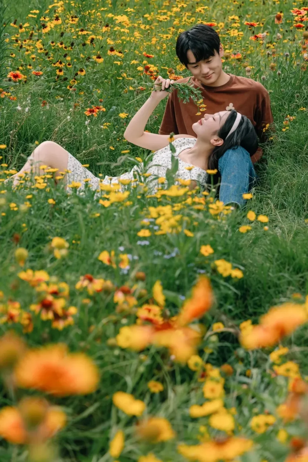 การถ่ายรูปกับดอกไม้แบบนี้ ให้สาว ๆ ลุยเข้าไปในดงดอกไม้ อยู่ท่ามกลางความสวยงามของมวลดอกไม้ จัดองค์ประกอบการถ่ายรูปด้วยการหันหลังหรือหันข้างก็ได้ พร้อมโพสท่าสวย ๆ หรือท่าทางที่สดใส จะช่วยให้ภาพที่ออกมาดูชีวิตชีวา มีความสวยงาม นุ่มนวล และสดชื่นมาก ๆ อย่างแน่นอน