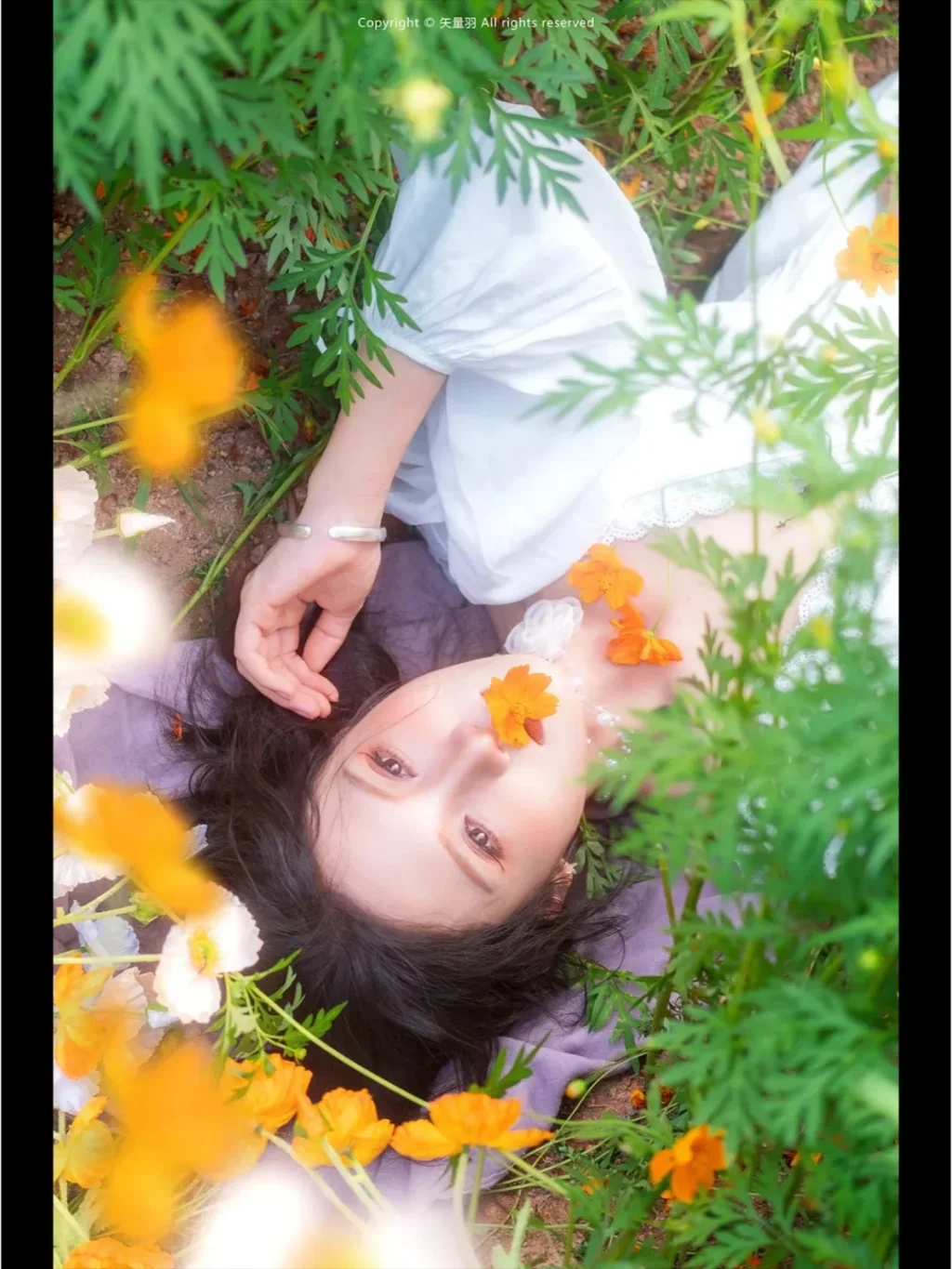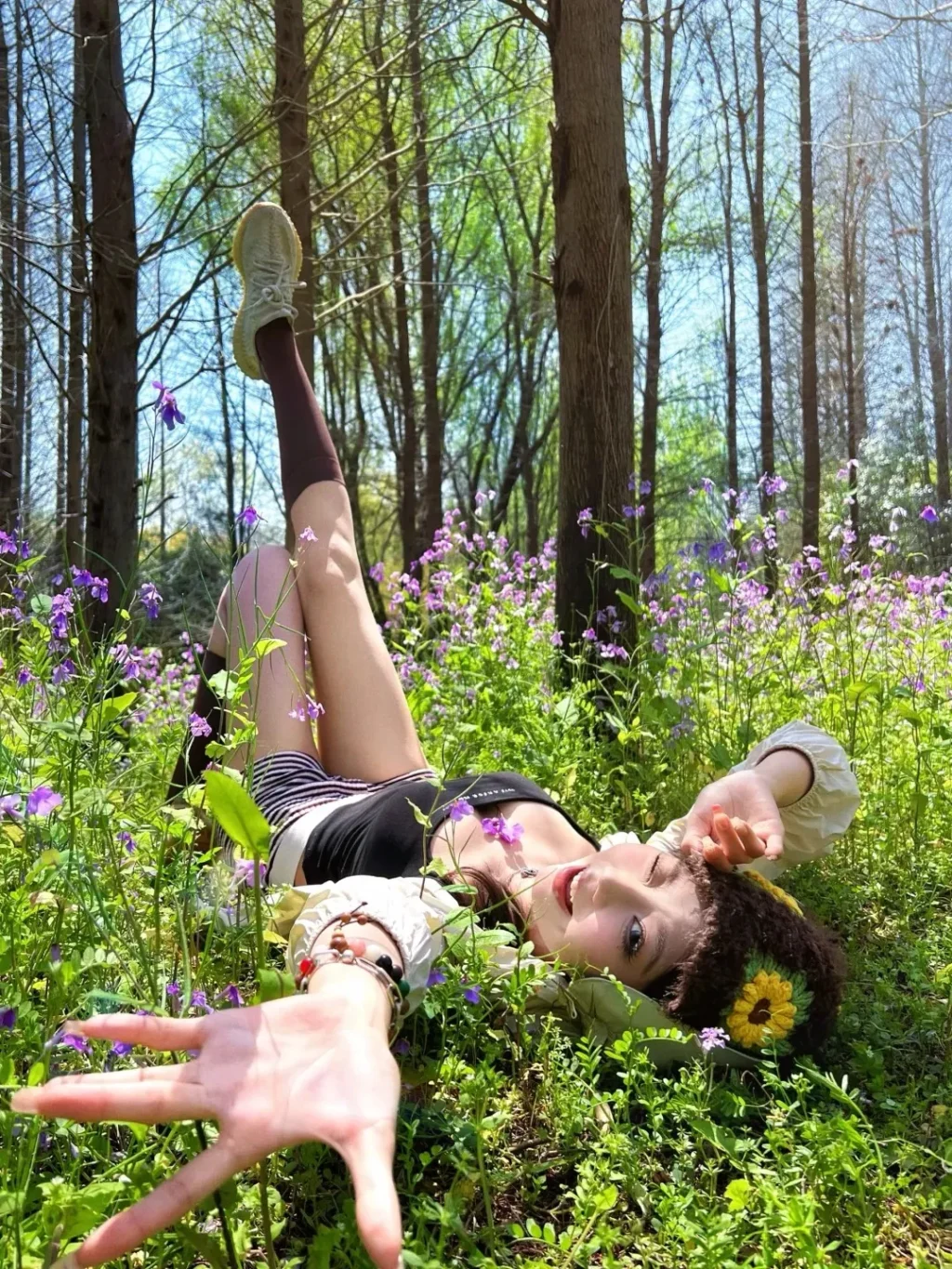 ถ่ายรูปกับดอกไม้ ด้วยท่าทีเผลอ