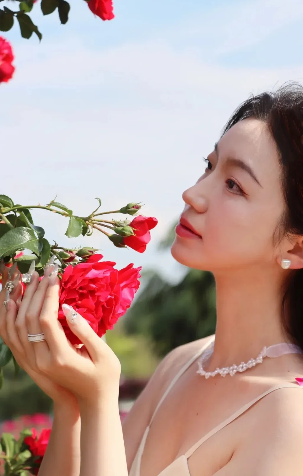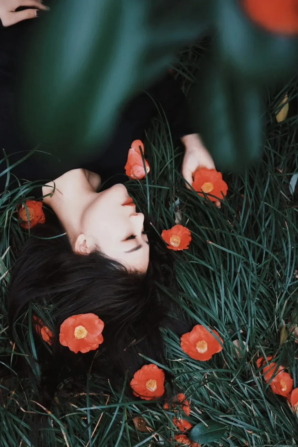 การหยิบเอาดอกไม้มาถ่ายใกล้ ๆ หน้า จะช่วยทำให้ภาพดูโดดเด่นขึ้น ดึงดูดให้ภาพมีความน่าสนใจมากขึ้นด้วย การถ่ายภาพแบบ Close Up เป็นการสื่ออารมณ์ของสาว ๆ ผ่านทางสายตา เพราะมุมกล้องที่ใกล้กับตัวแบบ พร้อมกับดอกไม้ในเฟรมที่สวยงาม