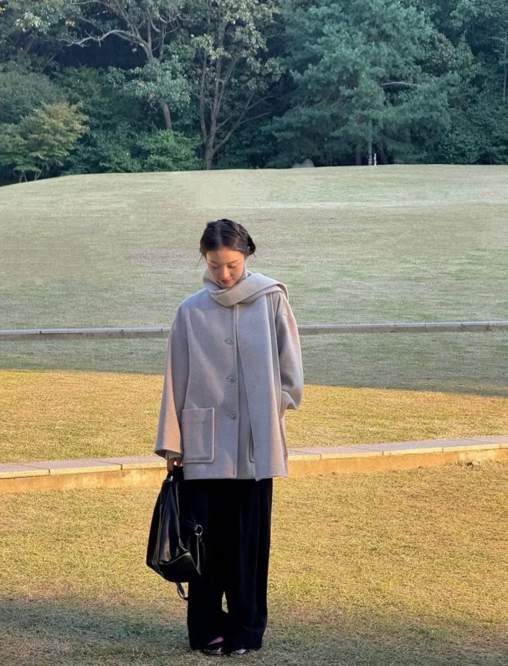 4. ผ้าพันคอ (Scarf) เพิ่มทั้งความอุ่นและแฟชั่น เลือกแบบลายตารางหรือสีพื้นเรียบ ๆ
